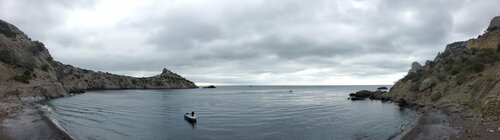 Отличный вид на Двухякорную бухту и мыс Киик-Атлама по дороге из Феодосии в Орджоникидзе.