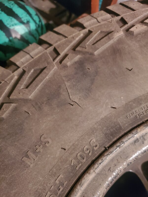 Зашили и вулканизировали боковой порез внедорожной шины, так что незаметно.