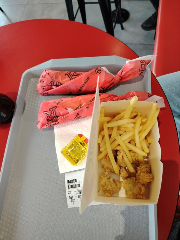 Сделали небольшой заказ и ждали больше получаса. Персонал за стойкой выдачи ужас. Работник Артур плохо выполняет свою работу, относится пофигистически, ходит с недовольным лицом. Из хорошего могу отметить только уборщицу, единственная, которая хорошо выполняет свою работу и доброжелательно относится к людям. Заказы готовят очень долго, хотя людей практически нет. В других точках такого нет. На фото то, что ждали пол часа. Всё было холодным и не вкусным. Ещё и лук положили в шефрол Джуниор, хотя указали без лука. Отвратительное обслуживание.