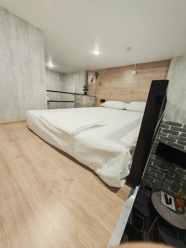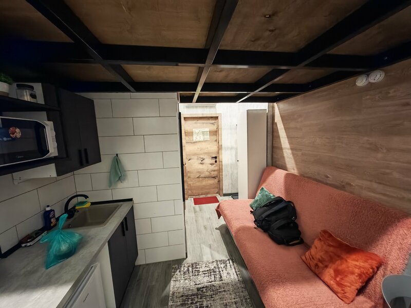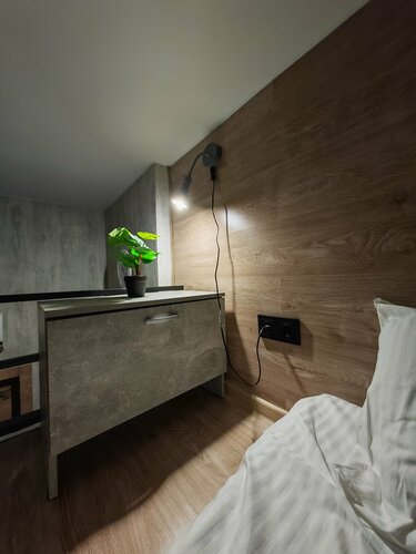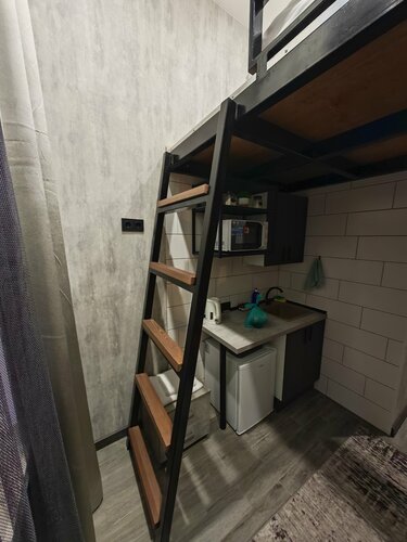 Короткая поездка в Екатеринбург, возникла необходимость переночевать две ночи недалеко от аэропорта Кольцово. В Азимуте мест не было и выбор пал на мини-отель "Рейс 66". Был заказан 4-х местный семейный номер с одноместным размещением. Такого я еще не видел. Номер оказался маленьким со вторым ярусом, куда забраться можно только физически здоровому человеку. Причем выключение центрально освещения возможно только около входа в номер. Поэтому или спать со светом, или выключать свет и по темноте забираться по вертикальной лестнице на второй ярус. Проблему удалось решить включением ночника, рядом с матрацем на втором ярусе. Но для этого лишний раз приходилось взбираться по лестнице. В номере было чисто, с вечера приносили завтрак, который можно было подогреть в микроволновке, благо в номере присутствовала мини-кухня. Шумоизоляция никакая, но так как номеров мало, это не сильно напрягало. Рядом есть места общепита, готовят вкусно, голодными не останетесь. На ресепшене персонал только в светлое время суток. Главный плюс мини-отеля, это то, что пешком за 5 минут можно спокойно добраться до аэропорта и наличие кофейного аппарата на входе с хорошим кофе.