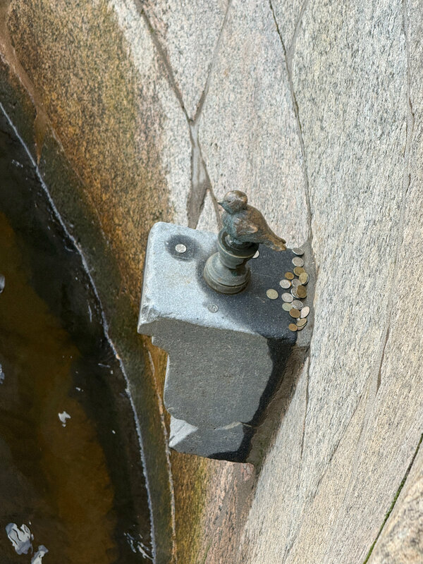 Чижик-пыжик - милый и очаровательный! Мы шли специально к нему, было интересно посмотреть на маленькое чудо. Он так хорошо спрятался! Но нам повезло его найти и разглядеть! Восторг - так можно описать наши чувства! Монеты мы в чижика-пыжика бросать не стали, «птичку жалко»!