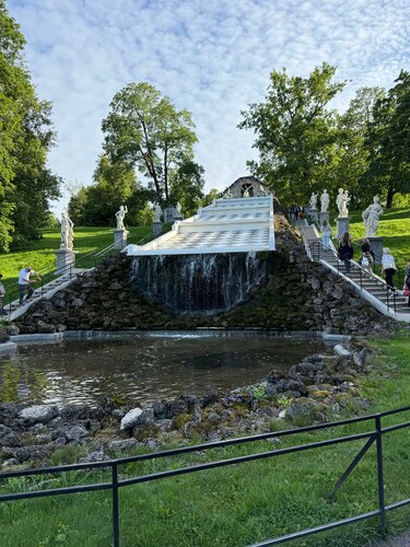 Напишу общий отзыв о Петергофе. Потрясающее место! Невероятной красоты фонтаны, роскошные дворцы и уютный парк "Александрия" производят неизгладимое впечатление. Территория ухоженная, цветы, клумбы, деревья бесподобны. Нам было интересно не только погулять, но и посидеть на камнях на берегу, наблюдая, как волны бьются о берег. Мы добирались сюда на Метеоре - это отдельное классное приключение! В Петергофе порадовали бесплатные и чистые туалеты. Из минусов: льготные билеты нельзя купить онлайн и цены на фастфуд на территории довольно высокие. Но в целом, Петергоф - обязательно к посещению для всех! Невероятная энергетика и красота оправдывают и дороговизну, и небольшие организационные неудобства.