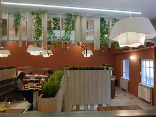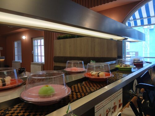 Очень красивое место! Персонал вежливый,т.к мы первый раз нам объяснили как что работает и даже угостили бесплатным чаем. Атмосфера очень дружелюбная, суши вкусные, заказы делаются на планшете и их к вашему столику привозит поезд - в общем, всё на высшем уровне, обязательно вернёмся сюда)
