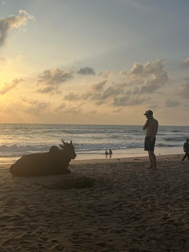 Если кто собирается отдыхать в Индии и конкретно на Гоа, то нужно выбирать: если хотите движ, тусовки, то это север, но пляжи грязные, если хотите чище, то езжайте на юг. Делать особо нечего, есть несколько баров, кстати неплохие и делают хорошие коктейли, пляж чистый, но коров и собак много.