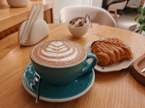 Подкупил хороший рейтинг кофейни, решила зайти и не пожалела. Приятный интерьер в пастельных тонах, приглушённый свет, растения. Правда, с названием обстановка будто не вяжется) Заказывала томатный кофе с базиликом (раф? не помню) и тыквенный латте с кранчем. Томатный кофе получился нежным, молочным и не приторным, базилика, к сожалению, не ощущалось. Тыквенный латте получился более сладким, не так понравился. Есть система лояльности, баллы капают при покупке от определённой суммы (от 300, от 500 и др.). Кстати, печатного меню в кафе нет, только электронное (на планшете у стойки). UPD: вернулась сюда в декабре, попробовала шоколадный Флэт Уайт. Для меня это самый вкусный напиток из меню — терпкий, сладкий, с благородной горчинкой. Парень-бариста с русыми волосами рисует красивые латте-арты 🔥