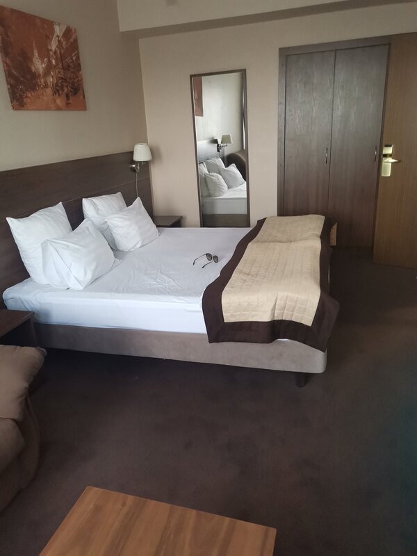 Остановились в этой гостинице на день,приятный и отзывчивый персонал, цены выше среднего, сайт для бронирования не работал в тот момент, в номере прохладно,даже холодно я бы сказала,что меня больше удивило,то что нет халата в номере, вышла из душа и просто окалела, две батареи на нуле, одну из которых можно включить о чем к сожалению нас не предупредили, мы просто проснулись от холода, у нас в шкафу чья-то футболка валяется, что не особо приятно, значит и номер не убирали толком, номер маленький, но довольно чистый в остальном, имеется всё необходимое. .