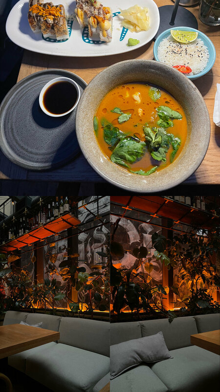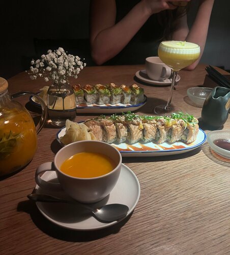 В целом заведение понравилось: приятная атмосфера, уютно, вежливый персонал, всё подали быстро. Роллы вкусные и свежие, чай тоже хороший. Также брали коктейли -всё было приготовлено достойно. Из минусов -цены показались немного завышенными, в итоге чек вышел довольно высоким. К тому же одно из пирожных закончилось, из-за чего не удалось попробовать всё, что планировали. В целом место хорошее, но скорее подойдёт для редких визитов.