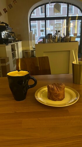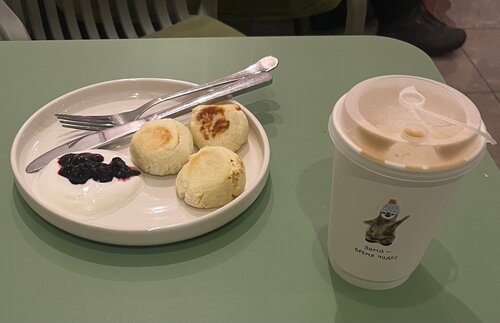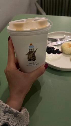Давно хотела побывать в этой кофейне. К сожалению, первое посещение оказалось не самым удачным: кофе был довольно горький, а сырники внутри оказались недоготовленными, при этом снаружи подгорели. Но атмосфера сразу понравилась - в кофейне спокойно, уютно, музыка играет негромко, можно комфортно поговорить или просто посидеть одной. Кофейня догфрендли, что тоже большой плюс. Решила дать месту второй шанс. Взяла бриошь с лососем и облепиховый чай - в этот раз всё было вкусно, впечатление стало гораздо лучше. Отдельно хочется отметить классную идею: по выходным на стаканчиках для кофе рисуют разные интересные рисунки. Очень мило и добавляет настроения. В целом приятное место для спокойной встречи с подругой или чтобы просто посидеть и отдохнуть. Если проходите мимо - зайти можно, но специально ехать через весь город, наверное, не стала бы.