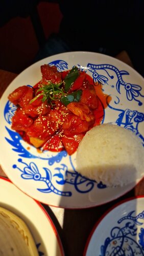 Последнее время часто посещаю разнообразные подобные места в поисках необычных вкусов,блюд и азиатских сочетаний. Рекомендую это заведение. Приятное обслуживание, у нас была прекрасная официантка (тонкая,тактичная,красивая,не навязчивая, внимательная девушка в волнистыми светлыми волосами средней длины. Волосы убраны,ногти короткие и опрятные. Уж простите,но лицл заведения-ухоженные руки и убранные волосы персонала. Вы очень хорошо работаете и мы вам об этом сказали. Простите,не запомнили ваше имя. Вы чудесная!) Блюда все понравились: салат из баклажанов; булочки с уткой, свернутые, как тако; курица с ананасами в очень вкусном и ярко-красном соусе; пельмени хороши-пробовали разные и конечно же десерт-в меру сладкая утка. Чай без сомнения тоже хорош! Так же понравилось, что столики маленькие, уютные,посуда так же по размеру соответствует столикам и компактно размещается на них. Очень хорошее впечатление, будем приходить постоянно.