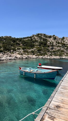 Прекрасная и уютная пристань с рестораном. Все вкусно. Свежейшая рыба и турецкое мезе. Причал деревянный, есть муринги, без электричества и воды. Есть лесенка для купания