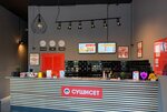 за 400 рублей получила сильное отравление! раньше там еще можно было есть, но сейчас качество СИЛЬНО упало, а цены выросли в 2-3 раза. в пирожке пегодя было какое-то очень странное мясо - попадались хрящи и пахло отвратительно(не удивлюсь, если это реально собачатина), съела только потому, что после работы была очень голодная. отвратительная забегаловка