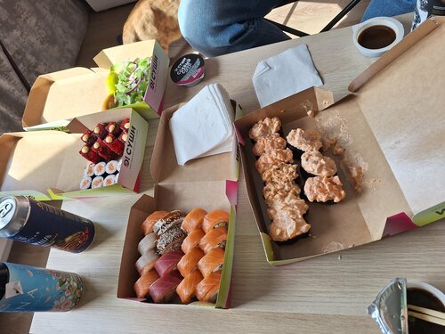 роллы и суши ооочень вкусные, рыба и морепродукты свежие, не пересоленные, соусов в меру, можно полноценно насладиться самой рыбой. размер роллов внушительный) из всех суши-мест МСК осуши пока выигрывает по качеству единственный минус, пожалуй, общение с поддержкой, из-за технической ошибки не применялся промокод, проблему не могли решить 3 дня. вроде мелочи, но если вы заявляете подарочный ролл за первый заказ, нужно как-то дать возможность клиенту воспользоваться акцией) пришлось заказать через несколько дней, когда проблему решили. подарочный сет тоже вкусный) айди 45537292
