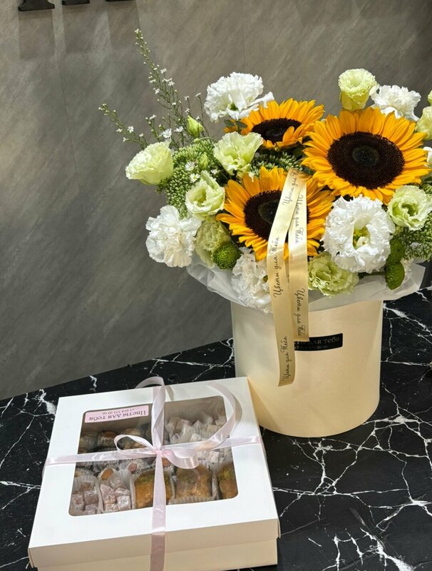 Сюрприз удался! Мамочка любимая была тронута до слёз! Все на высшем уровне! Живу далеко (Амурская область), хотелось поздравить маму с днём рождения необычно, показать нашу любовь не смотря на расстояния . И я очень рада, что в интернете мне попался именно этот салон! На звонок ответили сразу, приятный вежливый голос девушки, предоставили мне фото красивейших возможных композиций. Моим пожеланием было добавить к букету сладкий подарок..и с этим не было проблем!! - им оказалась великолепная коробка восточных сладостей + открытка с подписью. Очень благодарна девчатам за великолепную работу, Быстроту решений, Качественную работу. Всё супер! Вы лучшие!! Теперь за цветами - ТОЛЬКО К ВАМ!