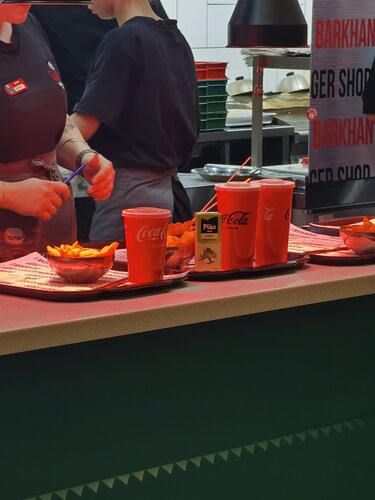 Мало места, сотрудники стараются работать оперативно, есть 2 терминала для заказа... постоянно тусуются подростки, людям с малышами и колясками не советую, места и столиков мало