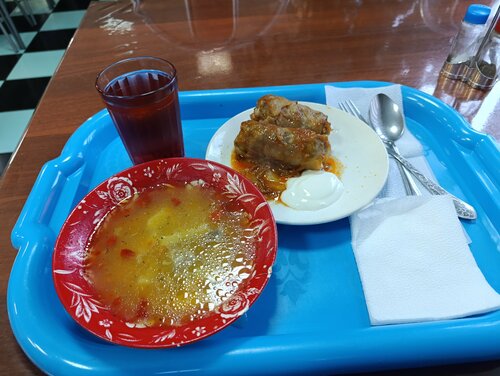 Вкусно и дёшево можно покушать. Большой выбор блюд. Красивый интерьер.