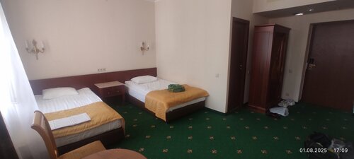 Ездили на экскурсию в Питер, разместились в этом отеле. Хорошее расположение,рядом большой парк как погулять,так и парк развлечений,большой фонтан,около которого много фудкортов,голодными не останетесь. В 5 минутах огромная газпром арена. Станция метро Зенит около 10 минут ходьбы, не более. Не далеко находится смотровой мост на Финский залив , красотища. Номера хорошие просторные,сан узел хороший,но не во всех номерах есть кондиционер,есть свой бассейн с подогревом но платный, стоянка своя.