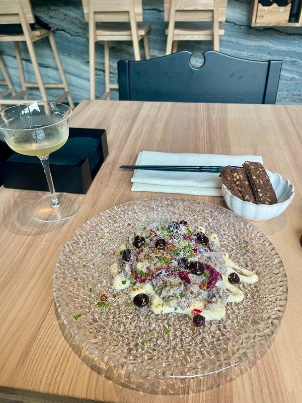 Это место мне настоятельно рекомендовали, и оно полностью оправдало ожидания. Современный интерьер, интересная концепция (удачное сочетание азиатских мотивов с локальными продуктами) и профессиональный сервис приятно удивили. Особенно порадовало, что за такую качественную кухню и подачу цены более чем адекватные. Персонал отлично разбирается в меню и всегда готов дать грамотную рекомендацию. Порции щедрые, подача аккуратная, вкусы продуманные и сбалансированные. Из попробованного хочу отметить one sip с манго, напоминающий Дайкири, и тартар из оленины – удачное и необычное сочетание различных ингредиентов. При таком уровне кухни и сервиса ценник более чем приятный.