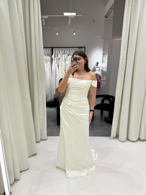 Это был первый салон, куда я пришла на примерку свадебного платья. Со мной работала стилист Диана, и это было очень заботливо и бережно: в начале примерки Диана провела маленький опрос по моим предпочтениям, попросила референсы, а затем подобрала платья для примерки. Все проходило очень комфортно и я чувствовала, что на меня никто не давит и я могу определяться, сколько мне захочется. После того, как я надела именно ТО платье, я уже ничего другого примерять не хотела и последние пару платьев надела на всякий случай, чтобы удостовериться, что не упускаю что-то ещё более важное (не упустила, получается). У меня свадьба ещё не скоро, и я планировала просто прийти и посмотреть, попробовать примерку и ощутить, как это и что мне нравится/не нравится. А ушла с платьем 😄 Я абсолютно довольна выбором. Платье идеально село по фигуре, но нужно будет подогнать рукава и возможно немного длину, с чем мне поможет портная от салона. После покупки платья предложили шампанское, чтобы отметить это событие. Было приятно! В салоне есть также услуги хранения и отпаривания платья за дополнительную плату.