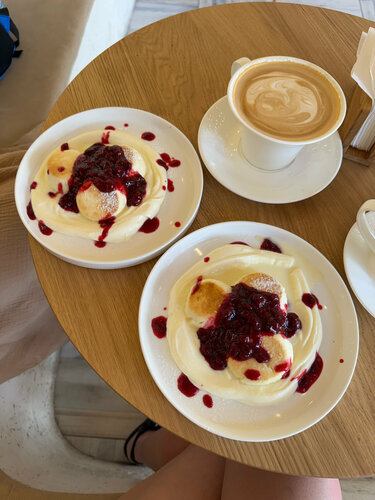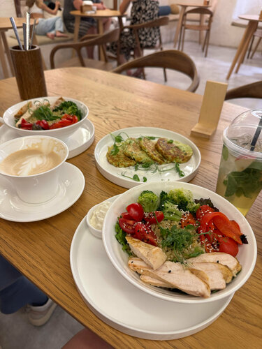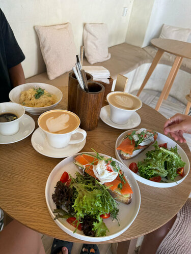 Несколько раз тут была по рекомендации и осталась довольна качеством кофе и еды! Приходила на завтрак и на ужин, и в целом просто посидеть с кофе, и все было всегда прекрасно. Но есть несколько нюансов, которые и не позволяют поставить 5 из 5: 1) долгое ожидание: готовьтесь к тому, что поесть и выпить кофе быстро не получится. В среднем ждали всегда около 20 минут (даже просто напитки, хотя приготовить их явно можно быстрее). Но еда всегда была вкусной, как и кофе. 2) Особенности некоторых блюд, которые я не понимаю. В самый первый визит брала сырники. Текстура плоховата, пока ещё ни в одном заведении не ела такие странные сырники. Больше их точно не возьму. А ещё салат цезарь. Сам он неплохой, но есть нюанс: он подается с беконом и яйцом пашот. Если бы я знала о беконе, я бы попросила подать его без, потому что я его не люблю (в итоге мне повезло, я была с человеком, который любит, поэтому просто отдала бекон ему). Было бы здорово знать о таких нюансах, если блюдо отличается от стандартной подачи. 3) Девушка, которая работает на кассе и носит напитки и еду выглядит очень уставшей. Если она работает каждый день с 8 до 23, как и заведение, я ей очень сочувствую и прошу по возможности найти сменщицу. Если всё-таки сменщица у неё есть, прошу пересмотреть нюансы работы с персоналом, чтобы он был более дружелюбным хотя бы на кассе 😅 Мне кажется, что в городе появилось достойное заведение, и я этому очень рада. Желаю вам развития и надеюсь, что со временем все станет только лучше!