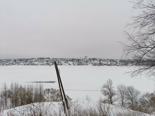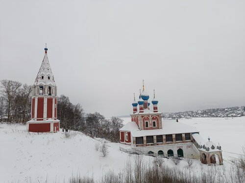 Красивая церковь у берега Волги,с высокого холма открывается красивый вид на другой берег города.