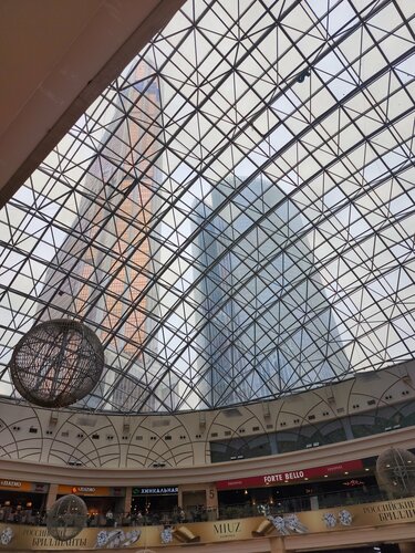 огромный торговый центр, много магазинов и ресторанов на любой вкус и цвет, есть кинотеатр, различные развлекательные пространства, через стеклянную крышу вид на Москва - Сити