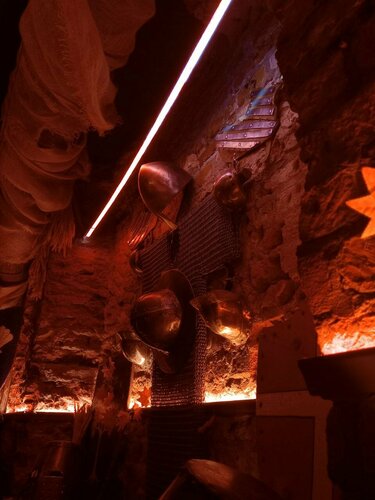 Впервые посетила данное заведение, хотя друзья давно рассказывали и зазывали на огонек, по случаю концерта Тэм и празднования дня рождения таверны было решено опробовать Новиградское гостеприимство. Что можно сказать - оформление зала восхитительно и антуражно, несмотря на большое количество людей и свободную посадку ( за большим столом с нами оказались незнакомые люди) в рамках общей атмосферы это было здорово - познакомились, пообщались - было точно не скучно, была куча конкурсов - люди выступали получали в награду настойки ❤️ в сумбурной речи дошли до кухни - это тоже был восторг - шашлык из индейки - сочное не пересушенное мясо, свежий салат и острый соус, из десертов - однозначно попробуйте запечённое яблоко. Уха 🤤 в целом кухня задрала планку очень высоко. Отдельное спасибо поварам. Официанты - умудрялись успевать всё, были в образах и заряжены. Концерт - отдельная тема - очень здорово слушать любимого менестреля в духе произведения по которому писались любимые песни. Некоторая публика расстраивала когда громко разговаривала и шумела во время выступление - но видимо воспитание, и издержки того, что это в первую очередь кабак) вишенкой на торт стала абсолютно неожиданная победа в лотерее и обретение главной ценности вечера медальона ведьмака. Считаю это добрым знаком, что место приняло и решило показать себя со всех сторон, а госпоже удачи - спасибо) посещу ещё ни раз, буду приводить друзей. Полностью заслуженный рейтинг в 5 звёзд. Бронируйте места заранее и будет всё отлично - с бронью никаких проблем не возникает.