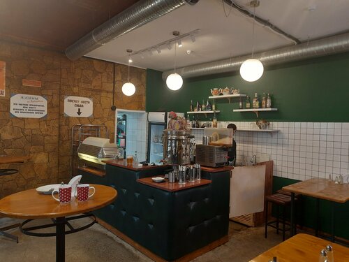 улица очень популярно нынче формата — "рюмочная". Интерьер внутри выполнен в стиле "лофт". Внутри пять- шесть столиков на 3-4 человек, и примерно столько же с наружи. Как и положено, в любой уважающей себя рюмочной, расчет происходит сразу при заказе, на баре. Меню кухни небольшое, но не без изюминки. Помимо стандартных для рюмочной, бутербродов и лёгких закусок присутствуют бургеры из лося, оленины, и говядины. Пельмени с начинкой из бобра, лося, оленя. Так же в заведении подают отличные свиные рёбрышки bbq. На кранах, как правило , всегда два-три сорта пива, медовуха, и сидр. Настойки в широком ассортименте, не менее 15-25 видов. Отдельные смельчаки, могут уходя попробовать адски перечную настойку "Атомный поджопник", но это, как говориться, под свою персональную ответственность ))). В целом очень достойное место, но если не любите шумные компании, то приходите пораньше ))!