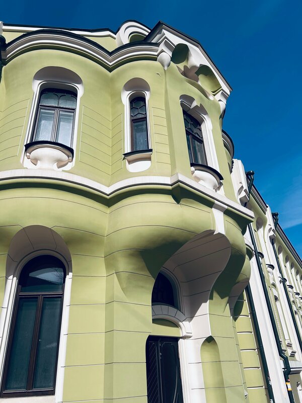 Роскошный комплимент для глаз: “Дом с этикетки Бабаевской шоколадки" в традиционном цвете для московского модерна и самый сладкий символ Москвы - особняк купцов и "кондитерских королей" Абрикосовых, основателей Бабаевской шоколадной фабрики. Фаворит: оригинальный цвет дома после реставрации.