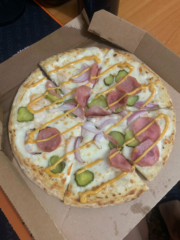 Ингредиенты просто кидают в пиццу комком, так еще и жалеют, за что деньги плачены?