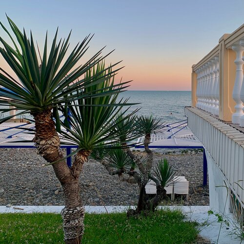 Честный отзыв. Я человек не придирчивый, но хочу предостеречь людей. Единственный плюс данного пансионата - ВСЁ, что находиться за его пределами: удобное расположение, можно добраться куда угодно в городе, красивейшая набережная, на территории хороший бассейн, много лежаков, есть свой пляж (в камнях, но в Сочи других и не найдете, везде одинаковые). Остальное полный провал: номера старые, потрепанные, нуждаются хотя бы в легком ремонте, грязные, потому что вы можете найти мусор и еду под кроватями, плесень и т.д. (горничные не хотят убираться, приходиться со всеми ругаться, чтобы вам поменяли полотенца, которые все равно приносят в пятнах), техника не работает, поэтому пришлось поменять номер, запах канализации и затхлости, отсутствие связи и интернета и самое интересное - душ, который устроен так, что вся вода из него выливается на пол, как бы вы не старались аккуратно мыться, которая никуда не девается (слив в полу просто не работает) и у вас появляется личный бассейн в номере: чем убирать воду? - Ничем. Что касается питания - тут без слез не взглянешь: меню однообразное (если вы хотите ненавидеть котлеты и макароны, вам подходит эта столовая, потому что разнообразия, даже минимального, в меню не будет), в последние дни мы даже не приходили и питались в кафе и ресторанах; сама еда - пресная и невкусная совсем, мяса в блюдах кот наплакал, в котлетах вообще один хлеб; официанты постоянно всё путают и часто роняли еду на пол, столовые приборы, кружки приносили грязные (с пятнами от помады); ну и в завершении вы получите расстройство кишечника, нас оно настигло (всех 4-ых людей). Не знаю, что может помочь этому месту, сколько жалоб бы не прилетало - все игнорируется. За что заплачены деньги? - за грязь, мусор, отвратительную еду. Однозначно не приеду сюда снова, и вам настоятельно не рекомендую!