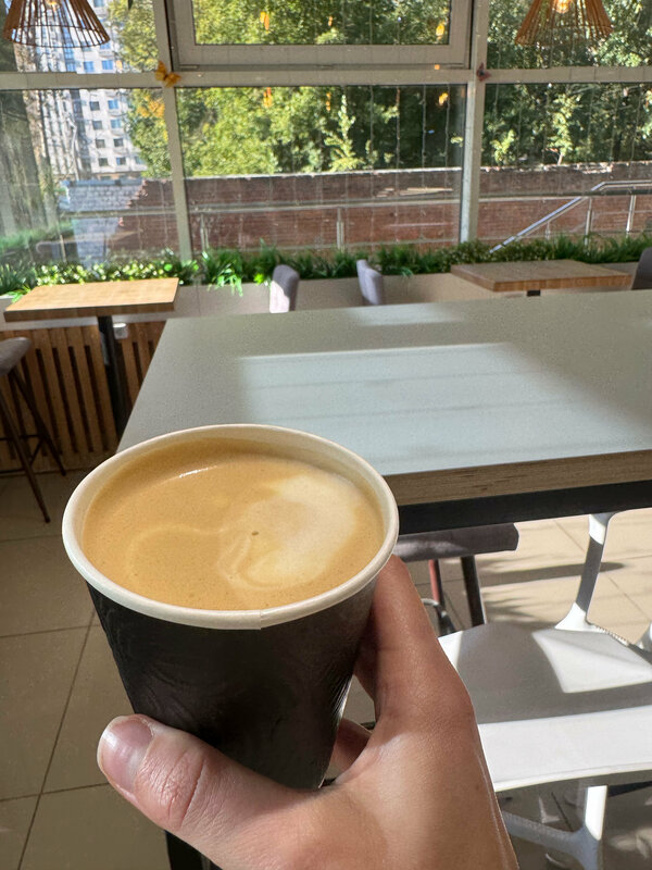 Уютная атмосфера, панорамное окно, розетки - идеально для работы и дружеских встреч. Вкусный кофе и приятные цены, расположение рядом с жд вокзалом