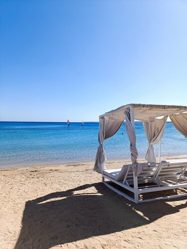 В этом отеле мы чувствовали себя, как дома! Очень клиентоориентированный персонал, вкусная кухня, на гриле готовят каждый вечер, иногда краба и перепелок. Потрясающая анимация: танец живота, аквааэробика, растягивающая гимнастика. Адриано - потрясающий! Очень уютная территория, с ухоженными растениями. Пляж с зонтиками и щитами от ветра. Очень понравился номер-шале с патио, выходящим на газон. На территории много птиц, есть удоды, белые цапли, которые вылавливают мальков из прибоя. В павой стороне от отельного пляжа можно найти длинный коралловый риф, недалеко от берега. Сам городок Сахль-Хашиш уютный, с пешеходным променадом вдоль пляжей.
