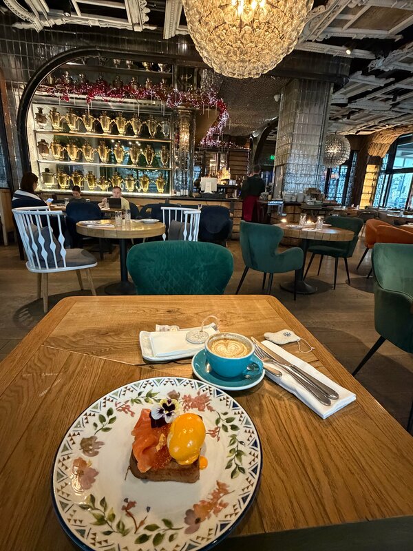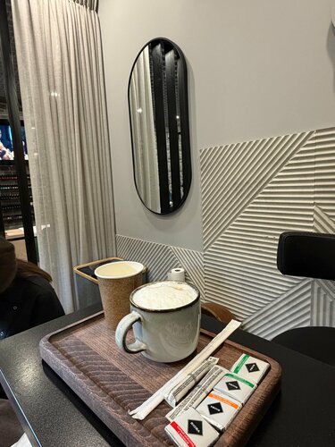 Красиво, но невкусно. Кофе только на безлактозном молоке, очень сладкое. Подача блюд красивая, официанты вежливые и приятные. Но тост, увы, был сухой, не хватило соуса, ощущение, что ешь всухомятку.