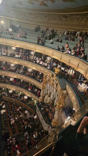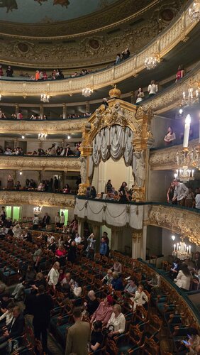 Ходили на балет, первый раз, сам театр просто нереальная красота. Мне очень нравится представление с музыкой в оркестровой яме. Очень удобно, что на каждом ярусе свой гардероб . Несколько буфетов, но мы были в основном буфете, классика, эклеры, шампанское, бутерброды с икрой и семгой