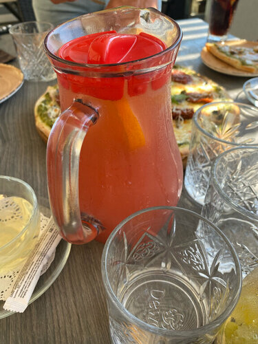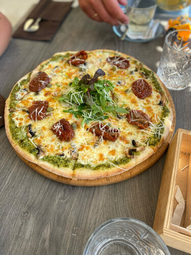 Готовят вкусно, но грязно и пыльно так как у дороги, цены невысокие . Литр вкуснейшего лимонада 400 р, пицца от700-900 руб реально вкусные и мы вносили корректировку просили сделать такую как хотят дети, повар сделал все как мы просили.Чай зеленый заказала с лаймом - лайма положили от души)))В общем место уютное, готовят вкусно, но не хватает сервиса)