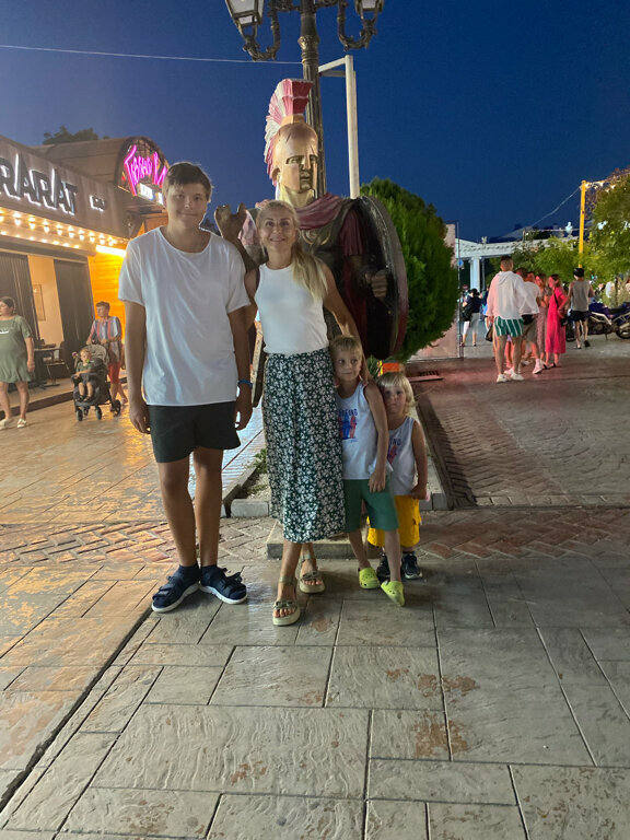 Дорога вымощенная камнем справа и слева кафе , магазины, реже аттракционы (покататься на машинке можно ребенку или виртуальная реальность, выбор небольшой ) и как на параде все толпой двигаются вперед по правой стороне ,и, соответственно двигаются назад по левому краю пути) Где-то жарят шашлыки и дым застилает глаза ,где- то музыка играет ,где-то караоке 🎤 поют. Мы прогулялись на 17 день отдыха , зашли случайно , попали в поток и уже не остановится )Дошли до пляжа там морские прогулки предлагают, детские открытые комнаты с лазалками разными,симпатичные и кафе, кальянные.