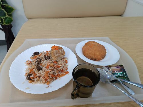 Заезжали два раза после 23.00 и оба раза порадовал широкий ассортимент различных блюд. Чисто, аккуратно, еда вкусная. Очень внимательная женщина не просто пробила и выдала заказанную еду, но порекомендовала что лучше взять, мотивируя тем, какое блюдо сегодня получилось лучше. Насколько понимаю, это одно из немногих кафе которое работает круглосуточно. Отдельно стоит отметить, что в Южном округе это единственное заведение формата халяльной кухни. Будет возможность, обязательно зайду еще раз.