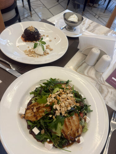 Пошла на Бизнес обед, думала сейчас как покушаю вкусно, предвкушала. Шла за сырным супом , цезарем и что-то из основного блюда. Сырный суп был в меню инстаграм у них и есть !! По приходу выяснилось, что в напечатанном меню его нет, есть томатный суп и суп с ягненком. Я заказала : Томатный суп, цезарь, жаркое с ягненком и картошкой. Томатный суп с сыром и сухариками - 5 звезд , вкусно Цезарь - 3 звезды. Курица была не дожаренная , с неприятным вкусом, откусив просто отложила на край, испортила все . Соус у цезаря вкусный , домашний. Жаркое - 3 звезды . Картошки в жарком не было ни кусочка (по меню есть) , очень жирное блюдо. Ягненок вкусный был. Получается в жарком был ягненок , много лука и каштаны. Ну такое себе ((( Чай - 5 звезд Водичка с лимоном - вообще супер и приятный бонус . Обслуживание долгое , долго ждала свой обед, потом еще сама пошла оплачивать, официант с концами пропал куда-то. Решила написать этот честный отзыв , чтобы исправили ситуацию, так как место в целом хорошее . Ценник бизнес ланча как у топовых ресторанов , например , Абрао Дюрсо. Надо соответствовать. Подкрутите по еде и будет все супер!