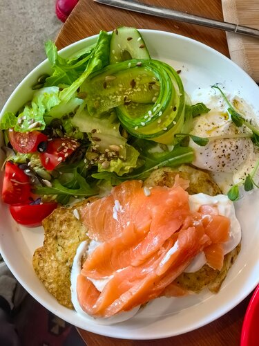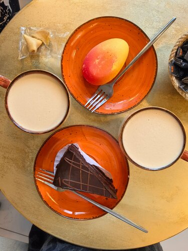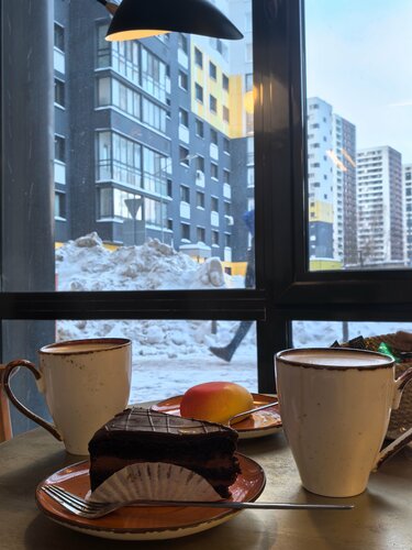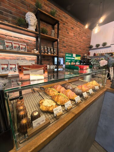 Уютная и теплая кофейня. То что надо, чтобы согреться после морозной прогулки. Два зала, где можно перекусить, выпить кофе или поработать за ноутбуком. Большой выбор тостов, завтраки весь день, круассаны и десерты в ассортименте. Заказали завтрак с дранниками и лососем, кофе, из десертов- шоколадный круассан и трубочку. Как сказал ребёнок: это самый вкусный круассан в моей жизни. Ценник средний