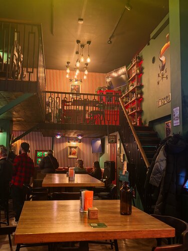Любителям футбола и крафтового пива посвещается! Ирландский паб, два этажа и отдельный зал с кальянами. В кальянном зале футбол не транслируют. Во время чемпионатов заранее бронируйте столики, свободных мест как правило не бывает и атмосфера просто огонь. Несколько экранов, как по мне у барной стойки идеально. На большой экран в общем зале приходится немного задирать голову. Вкуснейшее меню по закускам и горячим блюдам. Внимательный персонал, честные бармены. Самое вкусное вишнёвое пиво пробовала именно здесь. Отдельное спасибо Евгену за лучший сервис 👍