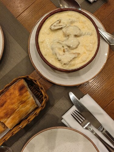Хороший грузинский ресторан. Праздновали день рождения, несколько раз приходили на бранчи. Порции большие, вкусно, большая винная карта. Два зала: в одном живая музыка, во втором по типу веранды можно посидеть с кальяном. Ценник средний. Самый вкусный чкмерули🤤 Звёздочку снизила за отсутствие кнопок для вызова официантов на столах, долгое обслуживание. Кальяны вкусные, но выбор табака не большой.