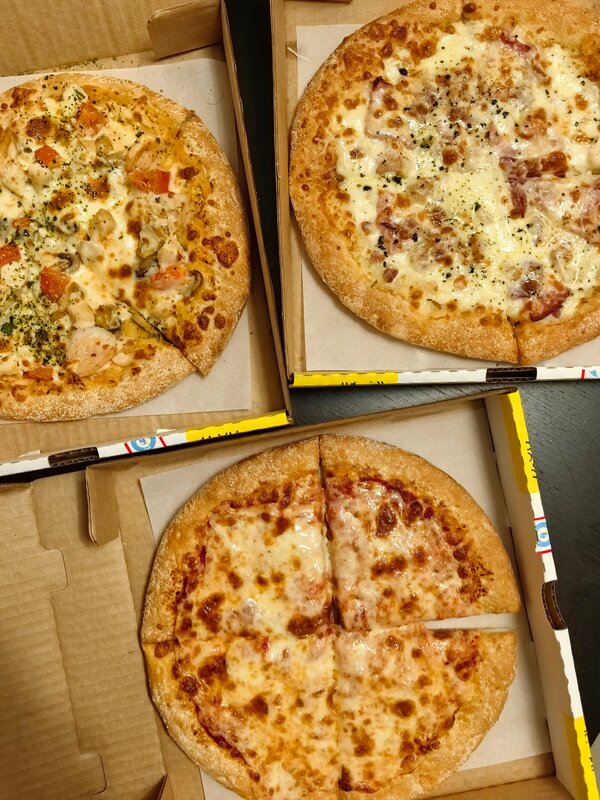 Заказывали доставку, три пиццы, фри, шоколадный фондан. Оператор перезвонил в течение двух минут, заказ привезли в течение часа. Варианты оплаты: кэш, онлайн, картой курьеру. Маленькая пицца доступна только на традиционном тесте, в пицце Том ям мне не хватило вкуса том ям. Фондан тёплый, с жидким центром- на 5+ Не самая вкусная пицца, которую доводилось есть, но за сервис и оперативность ставлю пять звёзд