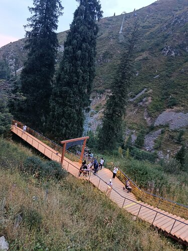 Легендарное кафе со смотровой площадкой - место из серии must visit) Приятно удивила уютная атмосфера, когда с закатом солнца разводится огонь и вокруг костра собираются люди из разных поколений и разных компаний, весело проводя время за настольными играми и дружескими посиделками. Кафе небольшое и кажется там всегда аншлаг, но мест хватит всем желающим, можно удобно расположиться как внутри кафе , так и взять напитки на вынос и атмосферно в окружении гор посидеть на скамейках по периметру. Удивила необычная пешеходная тропа с эффектом подвесного моста, парящая местами как будто в воздухе вдоль горы - вечером там особенно красиво, играет фоновая музыка и горят огоньки