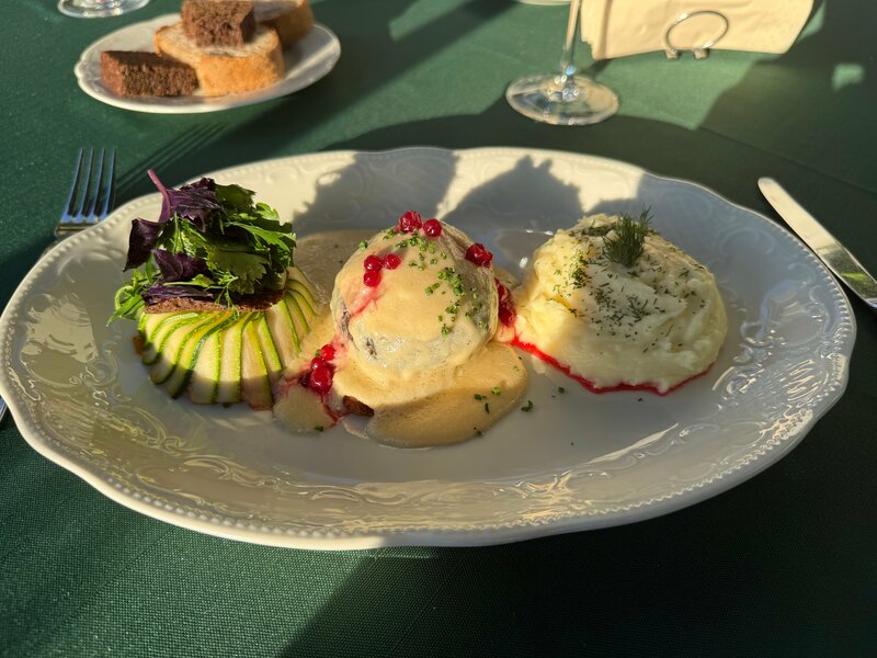 Ресторан в историческом здании, который занимает 3 этажа и веранду на 4-ом. При посещении как будто попадаешь в дворянский особняк 19 века. Здесь все еще можно найти и даже воспользоваться старыми железными лифтами, которые закрываются снаружи. Красивый внутренний интерьер и цветовая гамма, в том числе на веранде. Персонал и официанты очень внимательные, несмотря на то, что был вечер пятницы, веранда была наполовину свободная и для нас нашли место без брони. Вкусные пирожки, но не советую с ягненком (на любителя), понравились десерты (медовик и щербет манго-маракуйя) и щучья котлета. Неплохой квас, коктейли как и везде, ничего необычного. Цены довольно высокие.