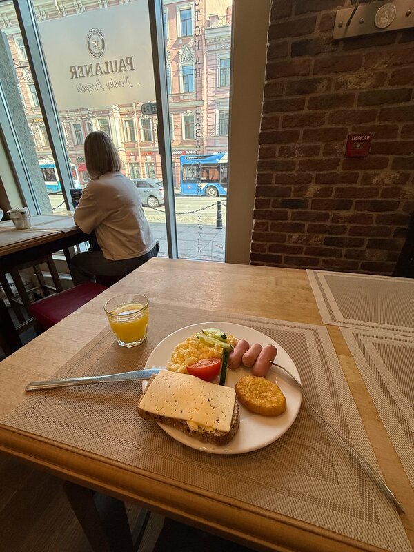 Очень удобное расположение отеля, всего 1 минута от Московского вокзала. Довольно много посетителей даже посреди недели (я приезжала во вторник). Номера нормальные, но окна открыть нельзя, работает система кондиционирования, которая сильно шумит (ночью приходится ее отключать). Плохая звукоизоляция в номерах. На завтраке обычно очень много людей и столы почти все заняты, приходится ходить искать себе место. Большой выбор блюд, персонал следит, если что-то заканчивается. Неплохой кофе. Также хороший вид из ресторана на Невский проспект. К сожалению, если смотреть прямо поблизости, около отеля нет нормальных заведений, где можно пообедать/поужинать. Рядом нашла только кафе-кофейню «ЛюдиЛюбят», где нормальный контингент и большой выбор блюд для кофейни (даже поздно вечером).