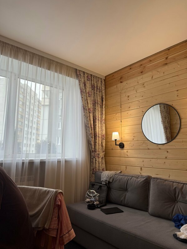 Бронировали гостиницу из-за удобного местоположения, так как основной целью поездки была сдача TOEFL в университете в 3 минутах ходьбы. Бронировали стандартный номер за пару месяцев, но позже за день до прибытия заметили, что номер комфорт уже продается по скидке. В итоге перебронирвали, оплата сразу на месте, принимают карты МИР. Номер был уютный, но вечерами было шумновато из-за летнего ресторана под окнами (да, работает даже в октябре). Для номеров комфорт посоветовала бы предоставлять умывальные принадлежности (хотя бы банальные зубную пасту и щетку). Завтрак состоит из трех блюд (мы брали омлет, кашу и блины с творогом), также тарелки с закусками (сыр, ветчина, хлеб). Но каждое утро был одинаковый выбор, что-то отсутствовало, в итоге мы мало что попробовали. Одним утром бронировали баню (баня + сауна). На двоих хватило 3 часа, стоимость 6 тыс российских рублей. В помещении также есть бассейн с холодной водой, маленькая купель с ледяной водой, комната отдыха и бильярдная. В комнате отдыха можно посмотреть телевизор. Заказ напитков только с 12:00, мы ничего не заказывали. В целом, баня нам понравилась для такого уровня. Пешком также можно дойти до музея ВОВ, находится в минутах 15 от отеля.