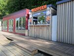 Из плюсов-быстро. Покупали чебуреки с ветчиной и сыром (мало начинки и жирное тесто) Так же взяли облепиховый чай - этот более менее норм.