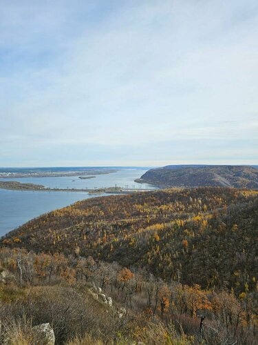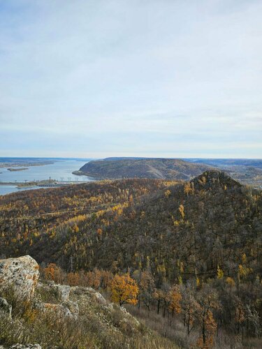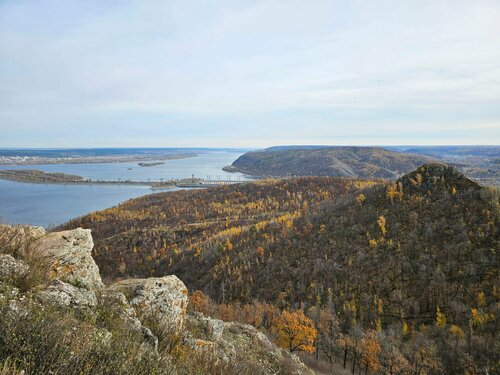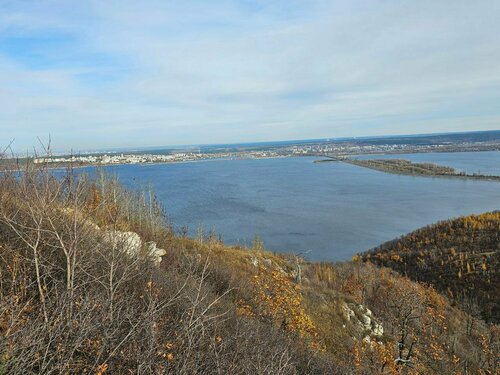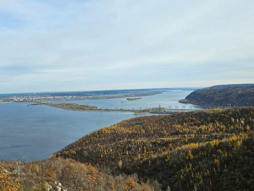 Живописнейшие панорамные виды на ГЭС, Волгу, острова, Жигули. Несложно добраться - площадка находится недалеко от трассы. Большой плюс - можно доехать на машине на самой вершины горы. Есть и тропинка для пешего подъёма. Можно совместить посещение смотровой с заездом на другие локации, включить как один из пунктов маршрута выходного дня. А можно и нагуляться здесь и в окрестностях, сходить на вершину горы Шишка, например.