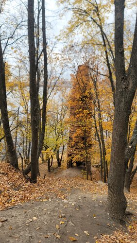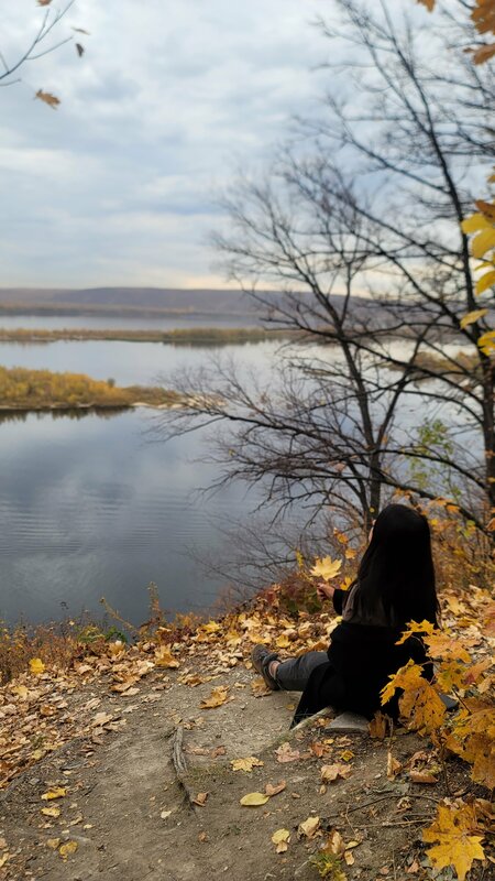 На днях открыла ещё одну живописную локацию - смотровая площадка Полка рядом со Студеным оврагом. Можно прийти сюда напрямую по дорожке через лес, шурша опавшими листьями и наслаждаясь осенним воздухом. А можно дойти сначала до Лысой горы, потом пройти мимо печи Ротмана, спуститься к берегу Волги, а потом дойти до Полки. Мы шли до Полки через Лысую гору и печь, а обратно через напрямую через лес