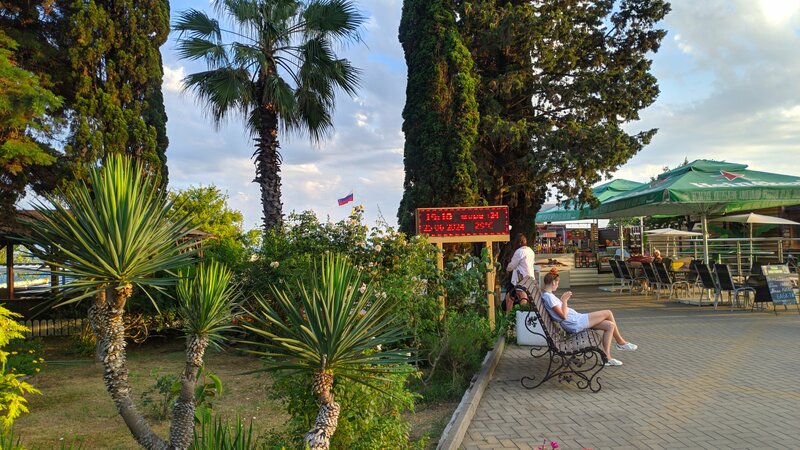 За свою цену неплохой санаторий. Бассейн отличный, большой, вода, конечно, не самая чистая, но поплавать можно, для детей идеальный. Еда без изысков, примерно как в хорошей столовой. Мы ели практически всё. Иногда только фрукты покупали, да мороженое. Море буквально за окном. Номера не люкс, но вполне комфортные. Белье и полотенца только 1 раз в 6 дней меняют, учтите. Мы здесь второй раз, ничего не поменялось ни в лучшую, ни в худшую сторону. Ну, а цены выросли на юге везде. Жили в стандартных номерах оба раза. Телевизор, холодильник, кондиционер, чайник, фен есть. И wi-fi здесь нет, только у стойки администратора роутер есть. В общем неплохой эконом вариант на берегу моря!!!
